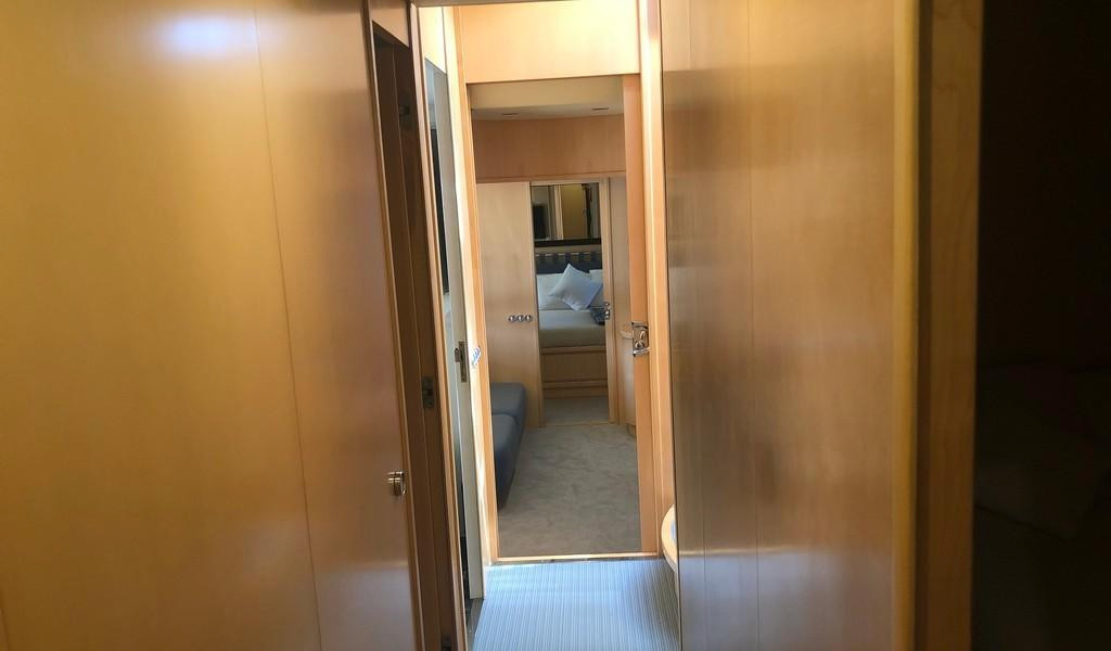 Équipé de deux moteurs MTU de 2000 CV, il atteint une vitesse de pointe de 30 nœuds. Les équipements de navigation incluent radar, GPS et pilote automatique. Le pont principal est doté d’un plan ouvert Sideck et le salon propose une disposition polyvalente avec toit rétractable. Le yacht dispose de cinq cabines, pouvant accueillir jusqu’à 11 personnes, incluant une suite propriétaire full beam avec lit king-size, coiffeuse, sofa et garde-robe, ainsi qu’une grande zone de bain de soleil et un coin salon à l’arrière et un spacieux sunpad à l’avant. L’espace pour l’équipage est aménagé pour trois personnes et la cuisine est bien équipée, avec un réfrigérateur neuf. Il comprend également un vaste garage, un tender, des enceintes Void, de puissants amplificateurs et une connexion pour table de mixage DJ.