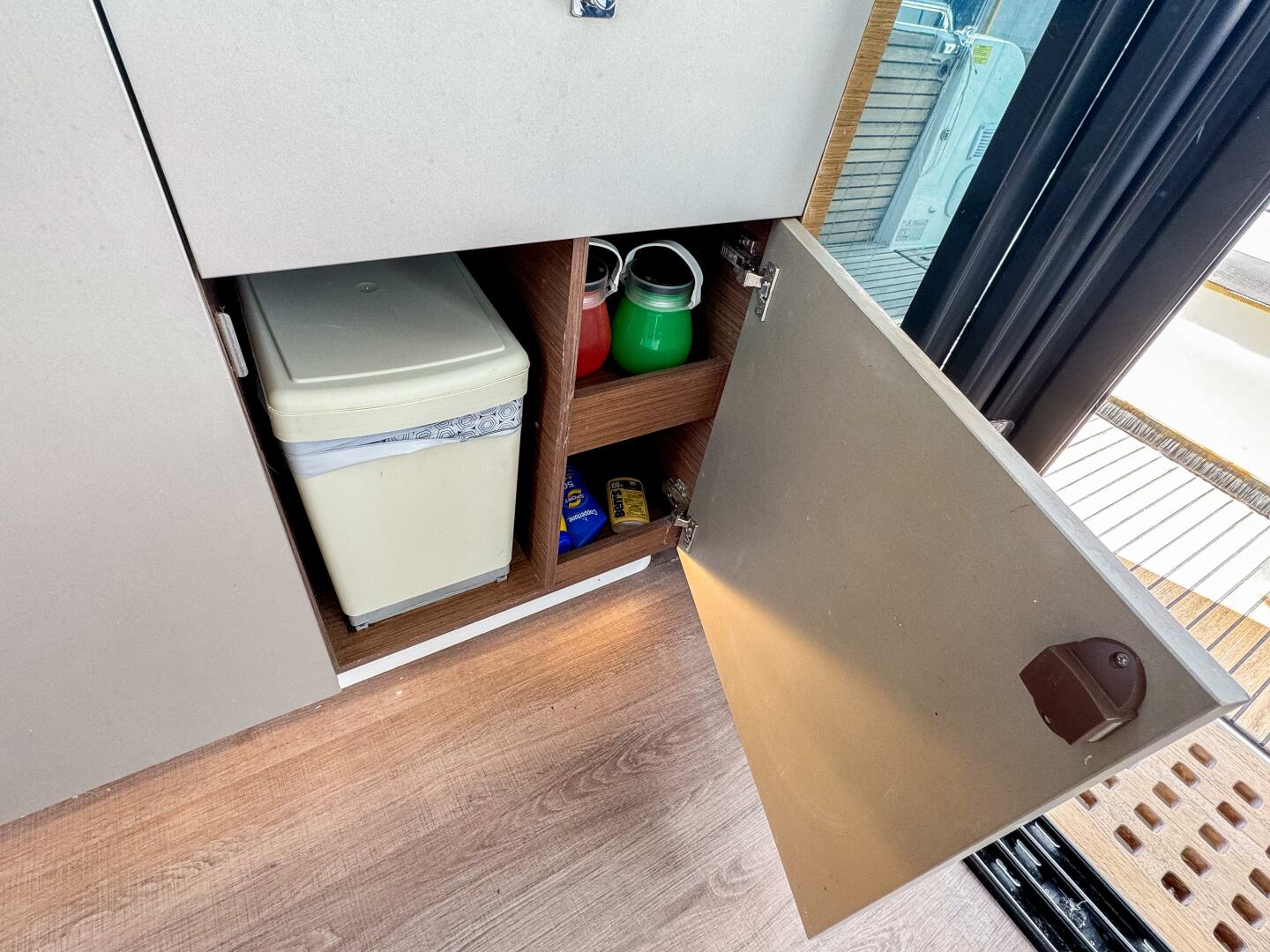 From the moment you enter the salon, you’re greeted with panoramic glass windows, a bright and modern interior, and finely appointed finishes that rival larger yachts. Below deck, two private cabins and an enclosed head offer generous overnight accommodations, while the expansive cockpit and forward sun lounge create multiple spaces for relaxation and entertaining.