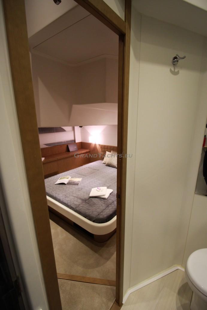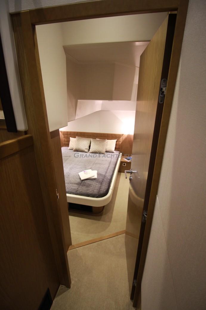The aft stateroom is clearly the master. It's full beam with good headroom to the port side at 1.85m. On both sides a wonderful view out the hull side windows is found and it's on an elevated platform 2-4 cm above the deck. Above that step the headroom increases to even 1.9 m.