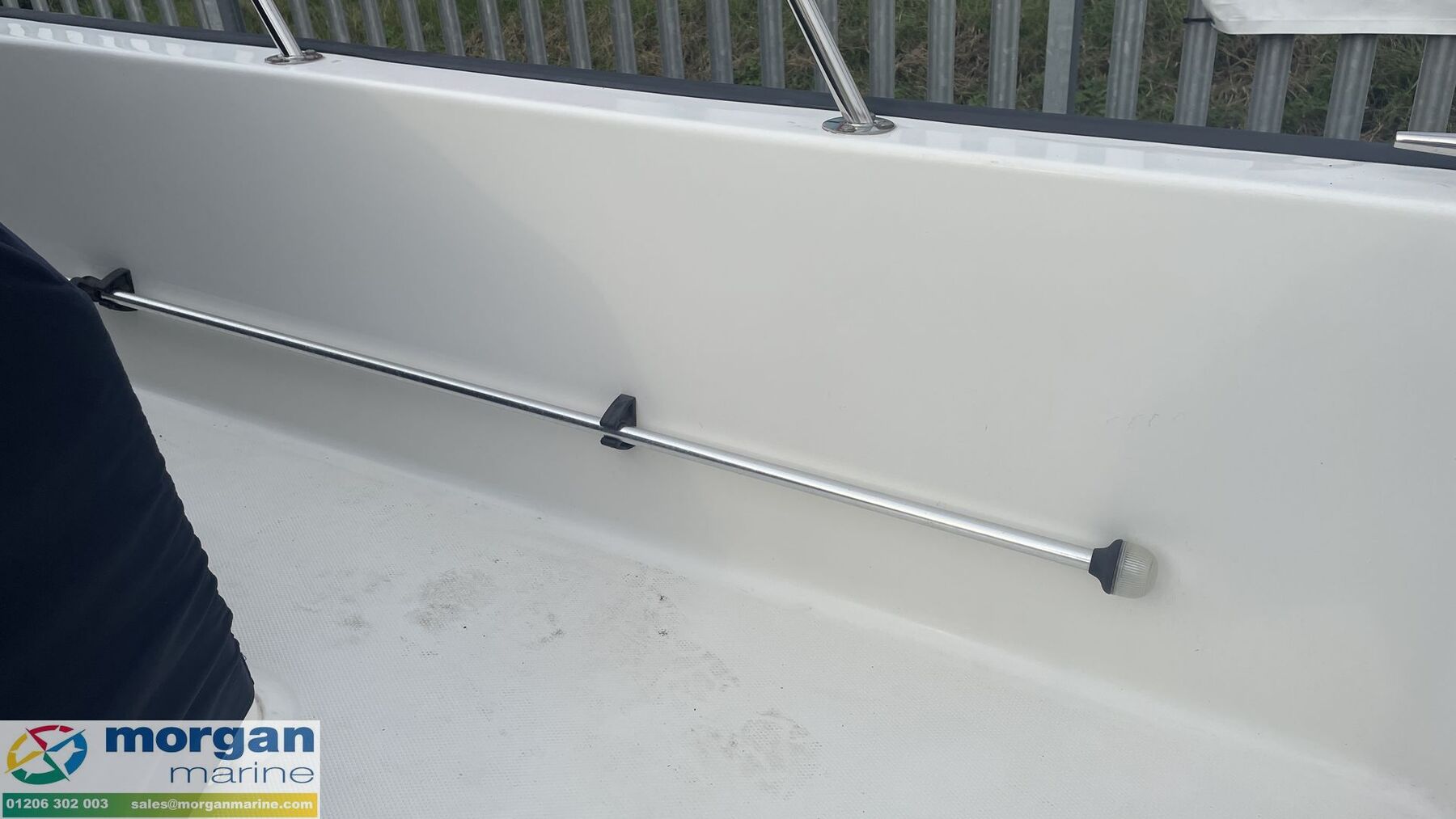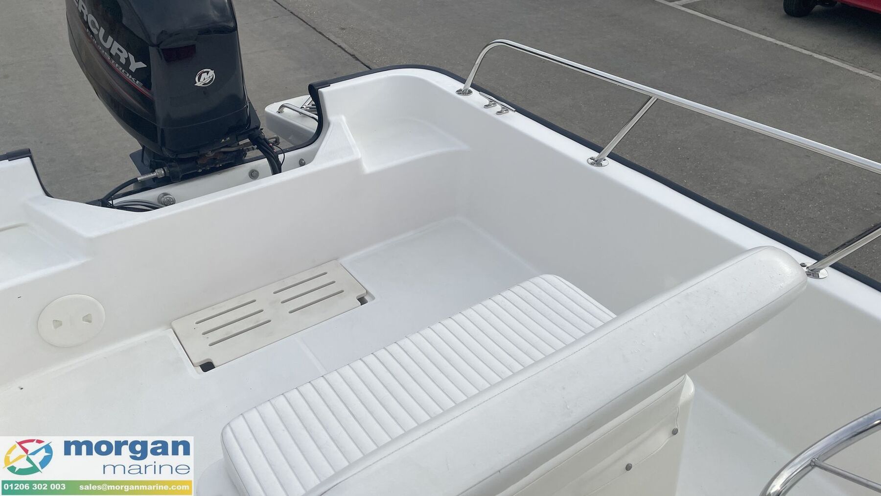 2013 Boston Whaler 170 Montauk has just arrived at Morgan Marine, a superb example powered by a Mercury 100hp outboard engine with only around 255 hours of use and an excellent service history. ‘Buzz’ is loaded with premium extras, including a Garmin chartplotter and VHF radio, a large self-draining locker, and a full fishing package with rod holders and a cool box complete with cushion and backrest. Comfort and convenience continue with a bow cushion set, navigation lights, swim platform with stainless steel ladder and handrail, reversible pilot seat, and covers for both the pilot seat and console. Renowned for their exceptional design, build quality, and refinement, Boston Whalers deliver performance and reliability that set them apart. This boat also comes with its own two-wheel trailer which is ideal for Morgan Marine’s park and ride service. A viewing is highly recommended to appreciate the outstanding condition and features of this Boston Whaler 170 Montauk.