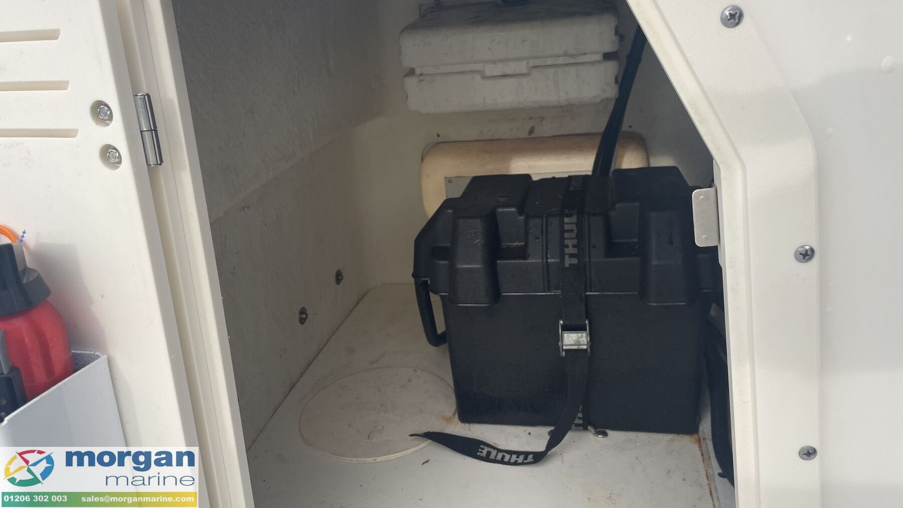Electronics: Garmin GPSmap 750s chart plotter. Garmin 100I VHF radio. Compass. Navigation lights. Anchor light. Electrical switch panel. Battery box with hold-down strap in console. Bilge pump with float switch. Isolation switch. Horn. USB socket. Mercury engine gauges (RPM, Voltage and PSI).