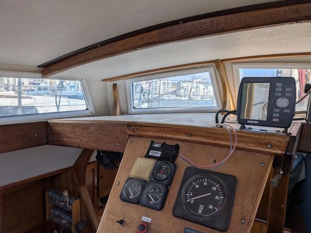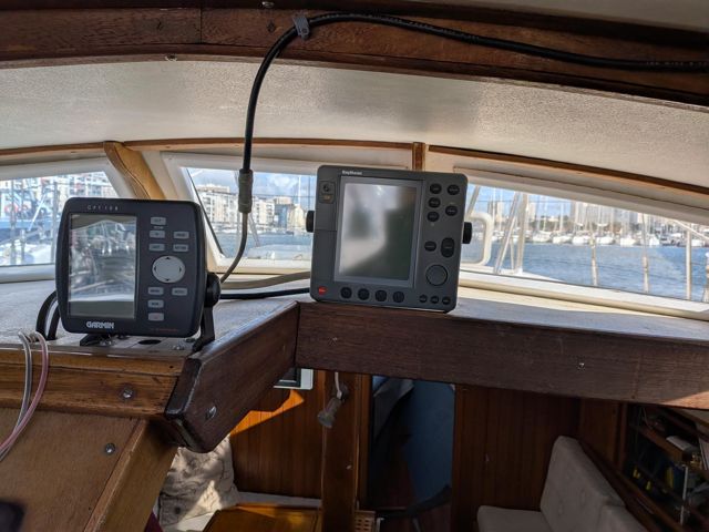 L’électronique de navigation comprend une BLU Icom équipée d’un Pactor pour l’envoi de mails et la réception de fichiers GRIB en mer, une VHF Navicom DSC, un AIS SR161, un GPS Garmin 128 complété par un GPSMAP 276C, un pilote automatique Raytheon ST6000, un radar Raytheon Pathfinder ainsi qu’un sondeur et un anémomètre Raymarine.