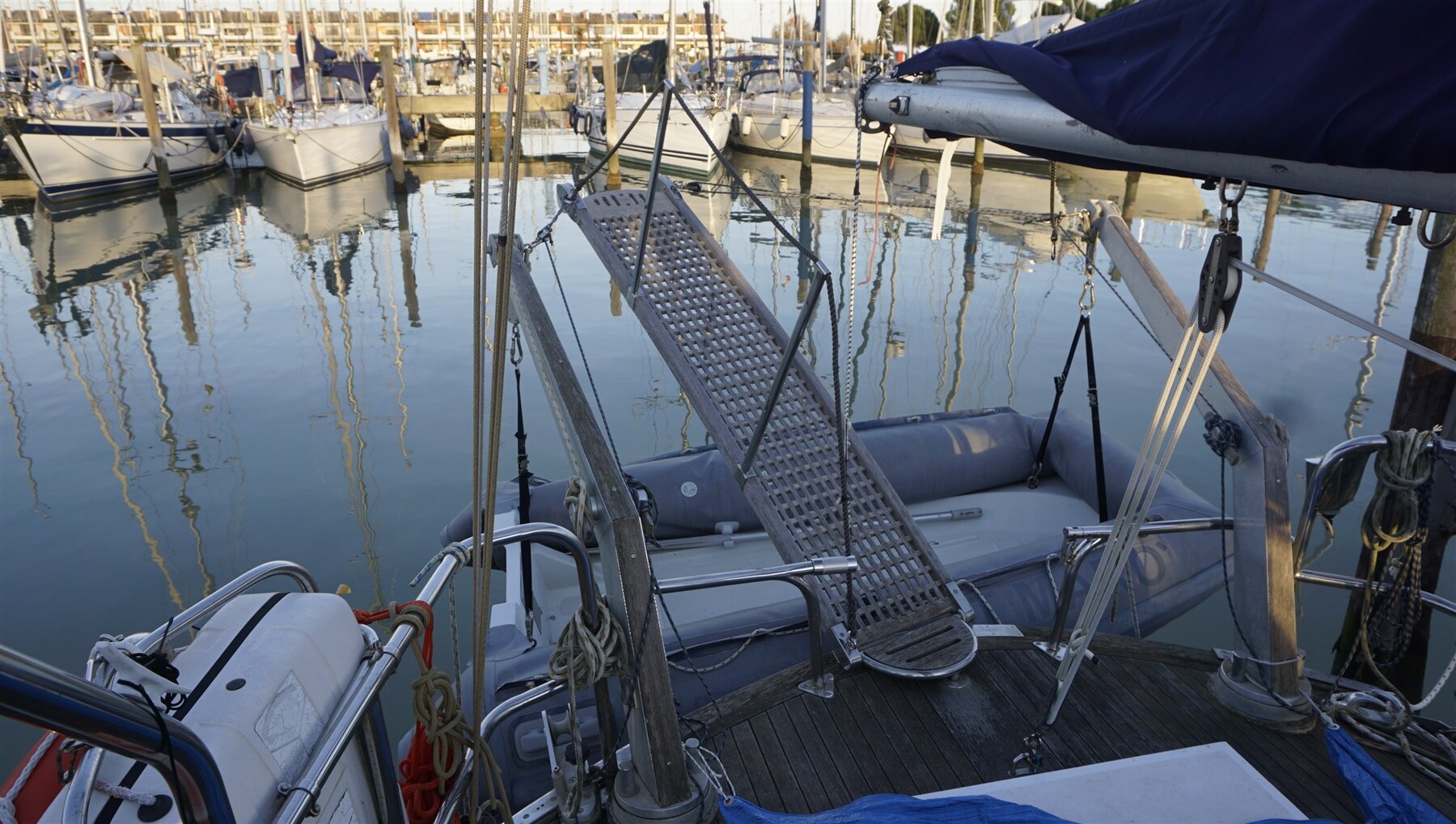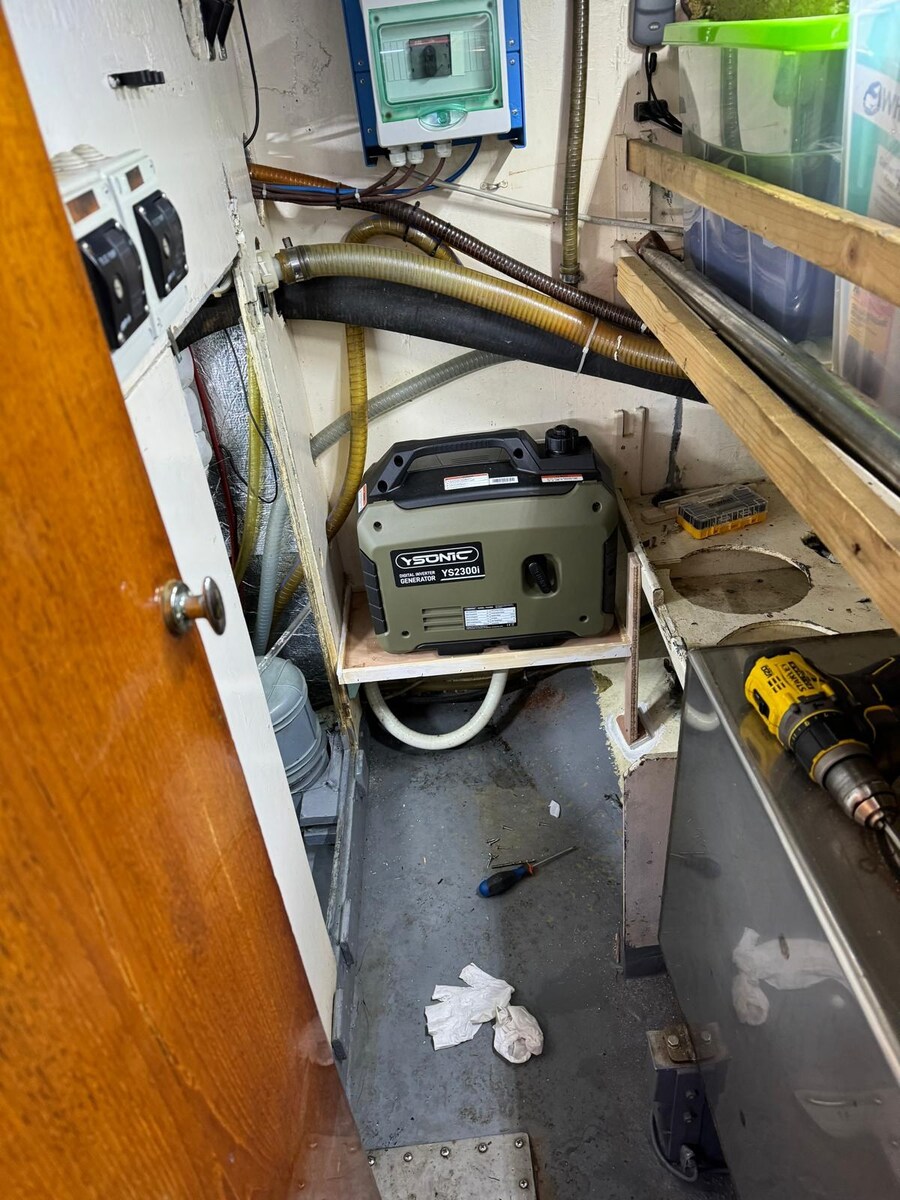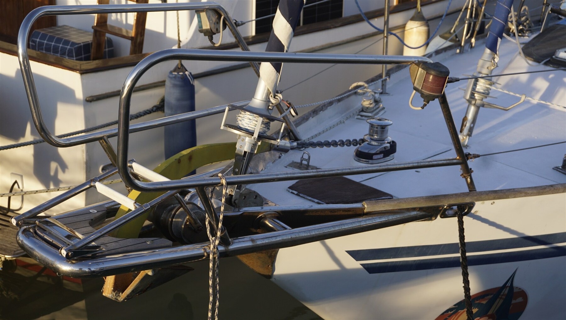 Альтернатор (new), Якорь (70 kg + 120 m 12mm chain), Автоклав, аккумуляторы (2024/25), внешняя душа, Винт носовой части - bowtruster (rev. 2024), ветрогенератор, Подъемные устройства для забортного двигателя, Подвесной мотор для тендера (TOHATSU 9.9), Солнечные панели, Отбойники, сходни, Платформа, Ручной трюмный насос, Прямая розетка от причала, Электрическая якорная лебедка, Трап ванной (+ bow ladder), cockpit table, Тендер (RIB), Лебедка, Электрическая лебедка (2 x), Windex.