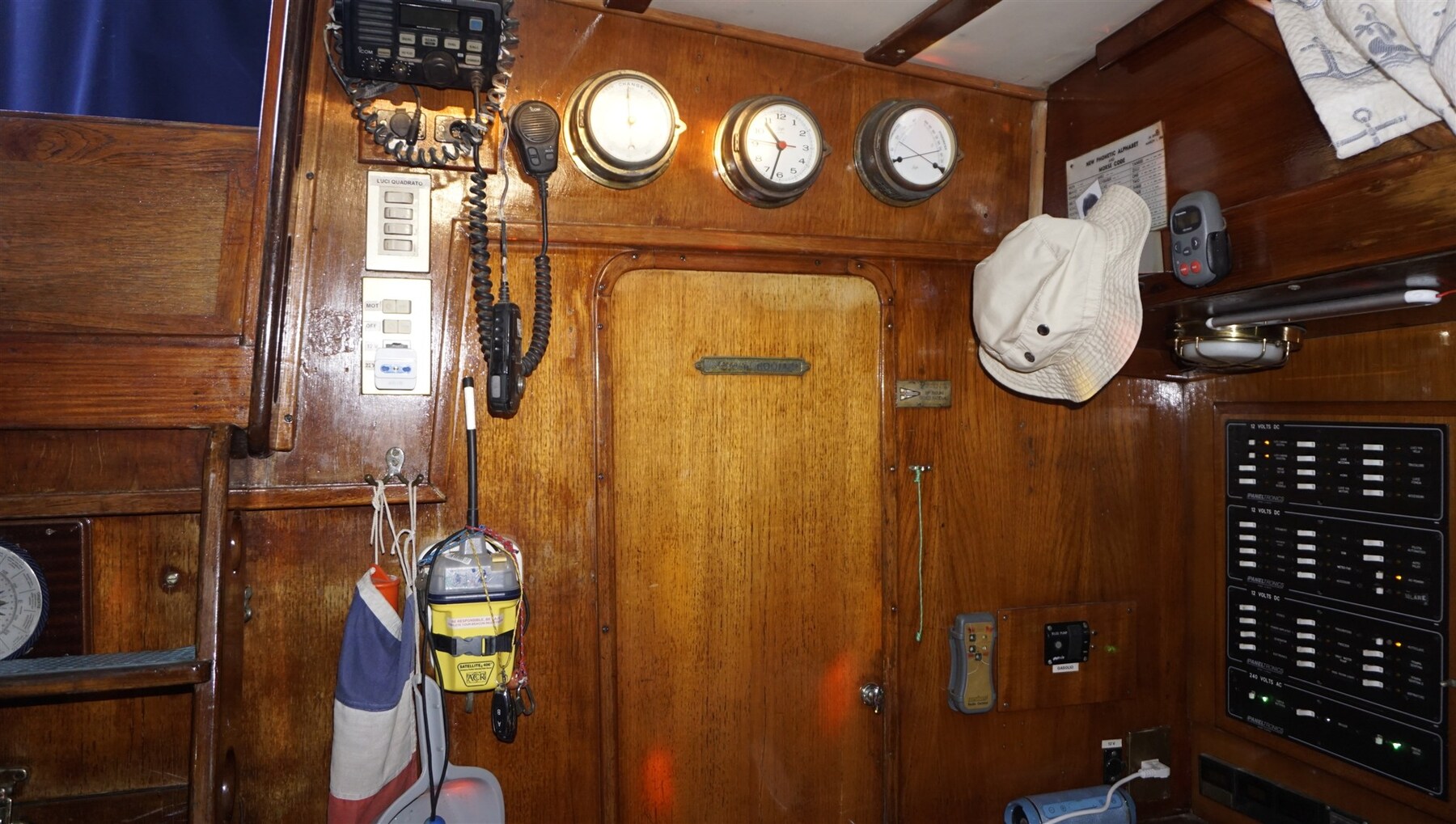 Rudder angle indicator, MeteoFax, Autopilot (2 x), SSB.