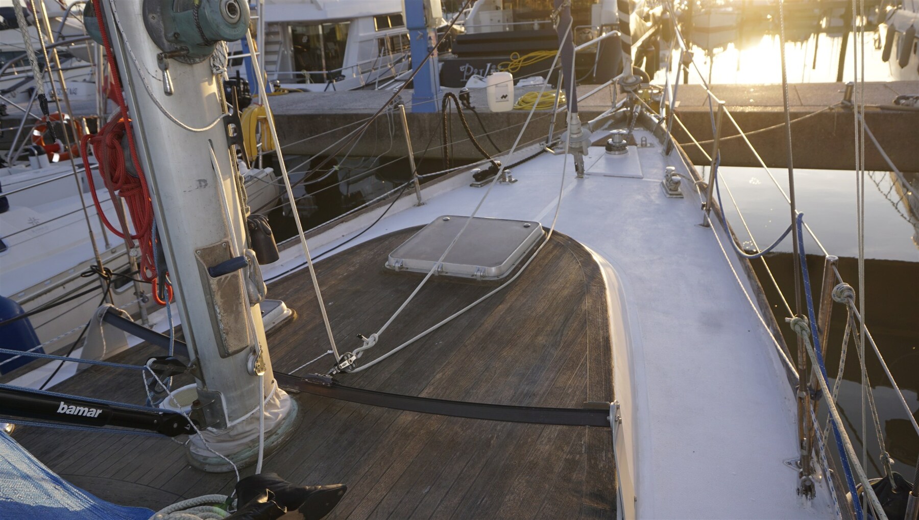 Wechselstromgenerator (new), Anker (70 kg + 120 m 12mm chain), Druckwasserpumpe, Batterien (2024/25), Cockpitdusche, Bugstrahlruder (rev. 2024), Windgenerator, Kran für Außenborder, Außenbordmotor für Beiboot (TOHATSU 9.9), Solarpanel, Fender, Gangway, Plattform, manuelle Bilgepumpe, Landanschluß, elektrische Ankerwinde, Badeleiter (+ bow ladder), Cockpittisch, Beiboot (RIB), Winschen, Winschen elektrish (2 x), Windex.