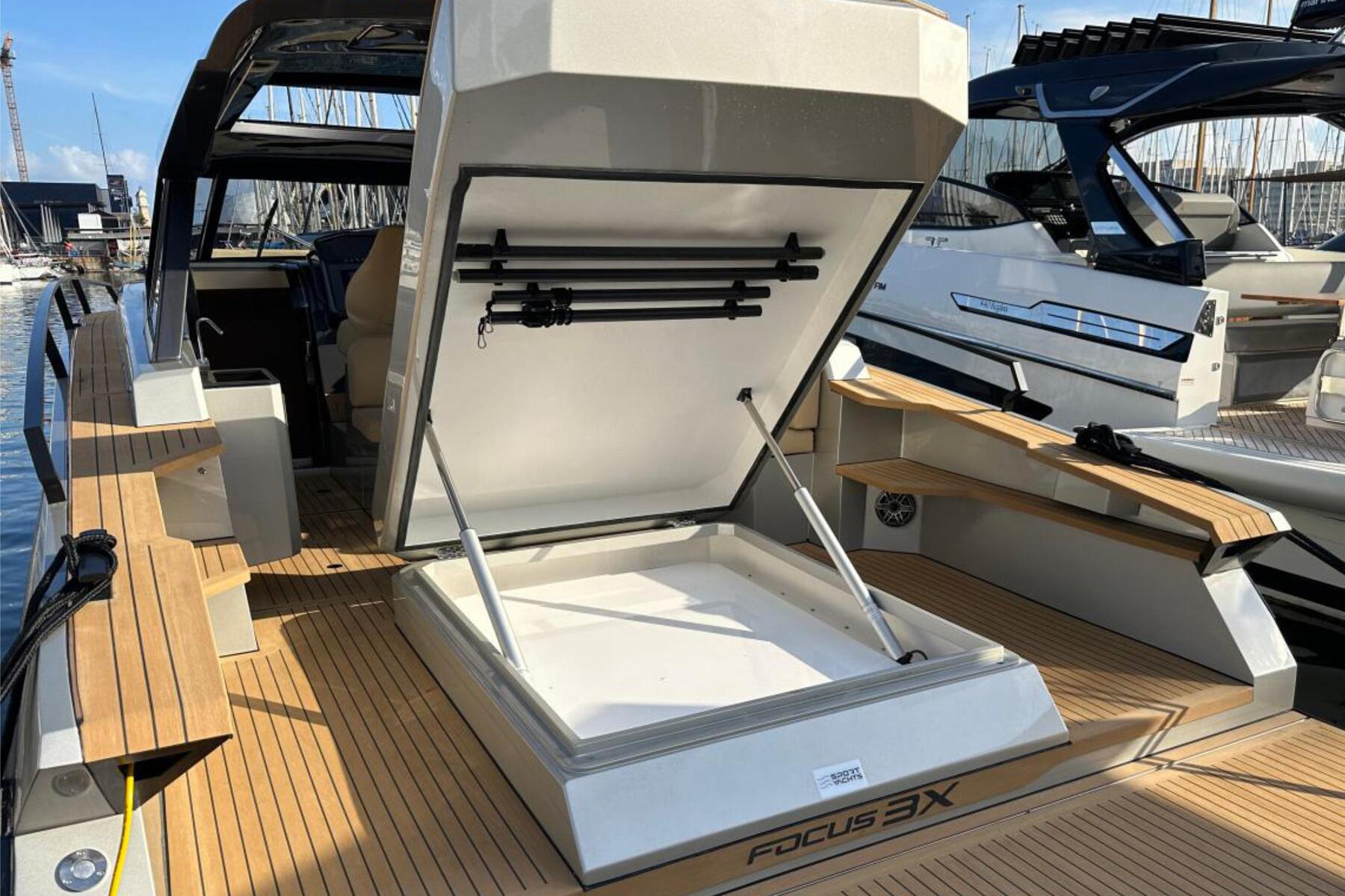 The Focus 3X is engineered to offer the best of both worlds: the openness of an open boat with the option for privacy. Key to this are the wide electric side windows, allowing for an instant transformation from an enclosed space to an open experience at a button's press.