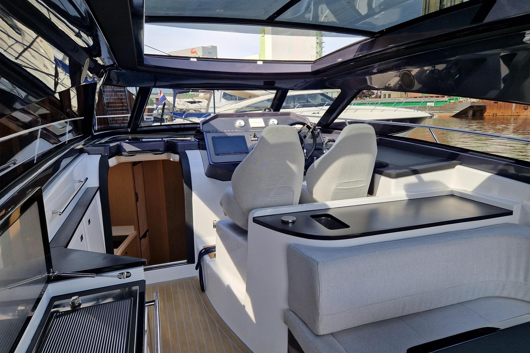 Closed cockpit layout with sliding glass doors