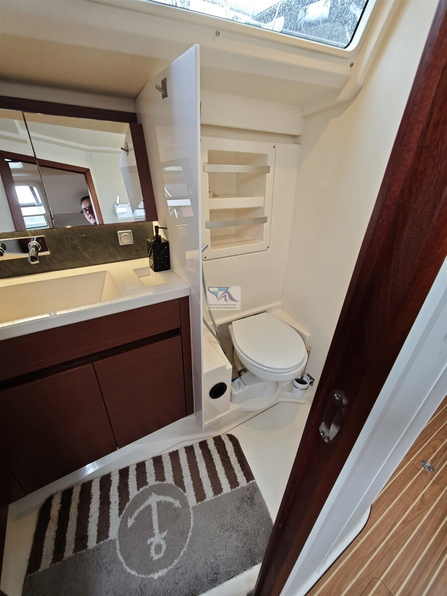 Anchor (Delta 16kg mit 30m galvanisierter Kette), Water pressure pump, 3 Batteries (je 160 Ah AGM), Deck Shower (warm/kalt), Twin Steering, Bow Thruster (12 V einziehbar inkl. Batterie), Solar panels (200 Watt), Platform (Badeplattform manuell mit Flexiteak), Teak Cockpit (Flexiteak, auch auf den Cockpitbänken), Shorepower connector, Electric Windlass (mit Fernbedienung und Ankerkettenzähler), swimming ladder, cockpit table (mit Staufach und Kühlschrank), 2 guard rails with gates, 2 Winch Electric (Lewmar 45 EST Evo Fallwinschen), Windex.