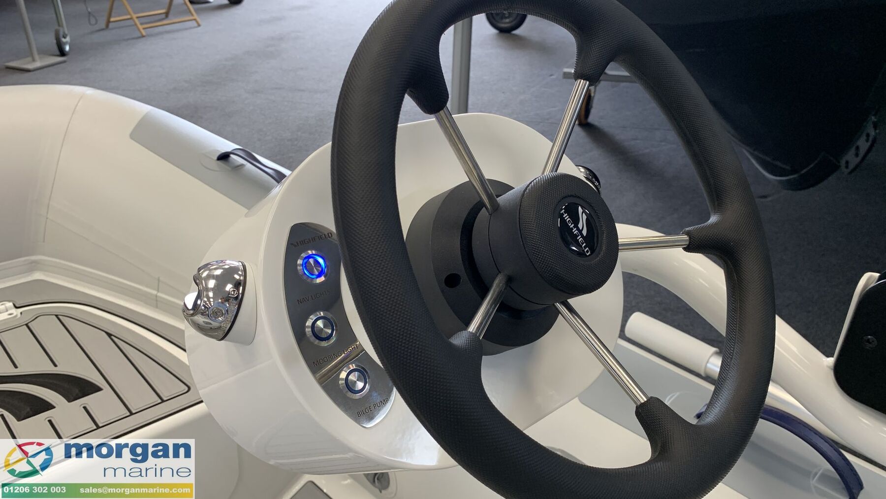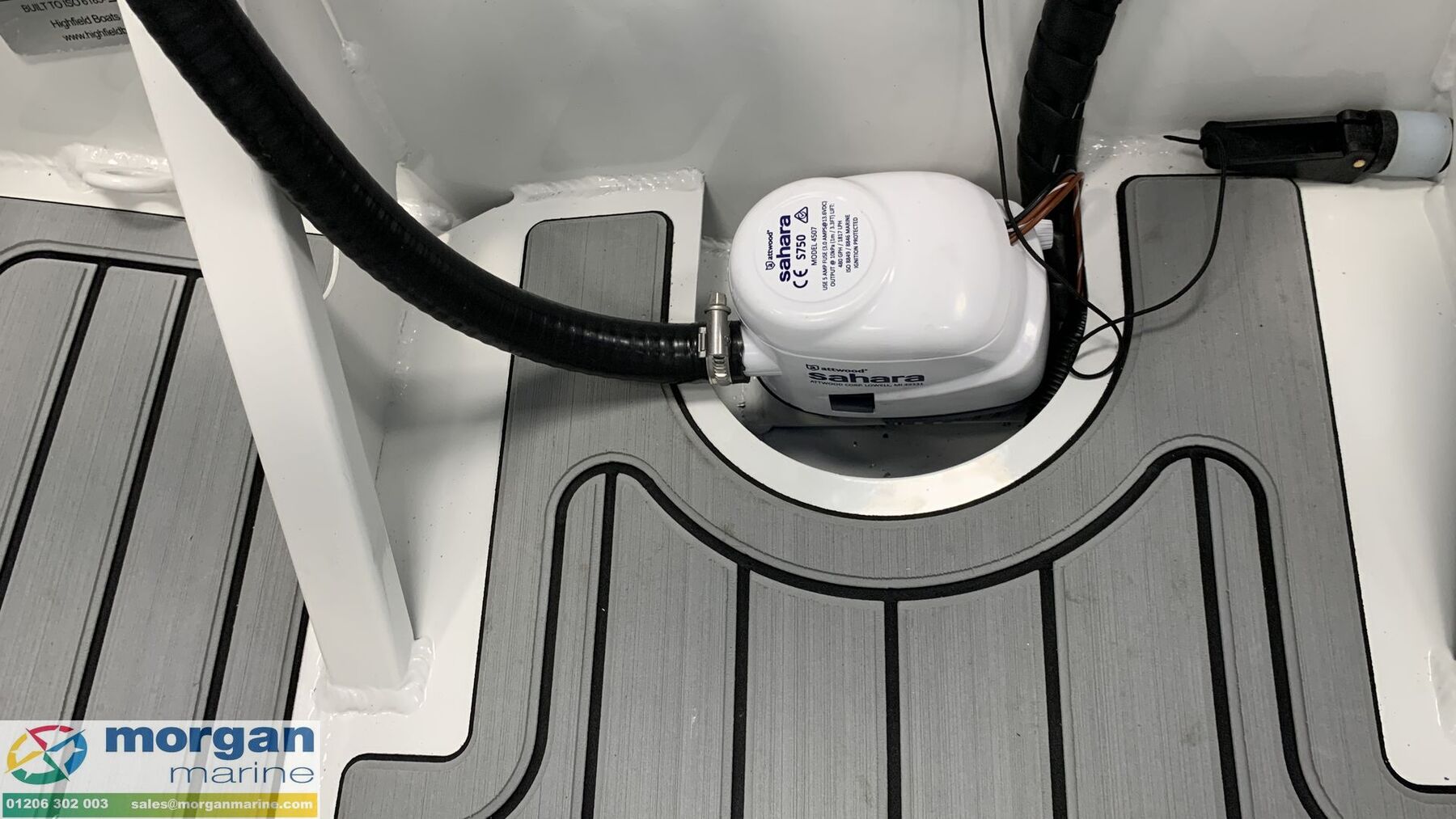 Electronics: The console helm is an open style design giving you unprecedented legroom in a boat of its size while flush mounted LED switches and branded steering wheel add a dash of style. Electronics include: navigation lights. anchor light and bilge pump. Battery + battery box.
