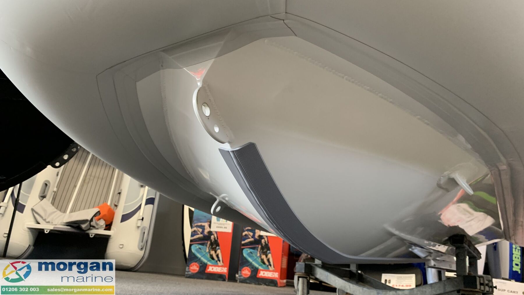 Deck: PVC tubes 44cm diameter. Self-draining deck. 2x Oars. Welded seams. Flush mount non return valves. High tensile chromated & powder coated aluminium hull. Bow locker (Fit 24L fuel tank). Integrated transom supports. Removable seat. Lifting points and towing eyes. Tow bridle points. Brushed foam teak finish deck. Heavy duty rubbing strake and full length keel guard. Foot pump and repair kit included with boat.