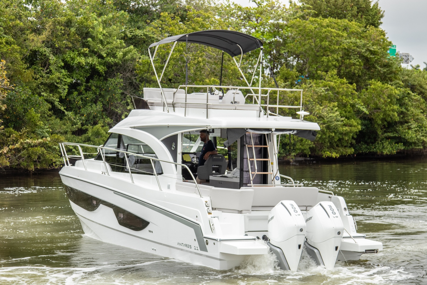 At just over 36 feet, the Antares 11 makes for a spacious and accommodating weekender or a family-friendly cruiser. Its large cockpit provides ample seating and easily converts to a sunbathing area, providing a platform for countless hours of fun on the water. Easily spend the weekend onboard with comfortable cabins and a well-equipped galley.