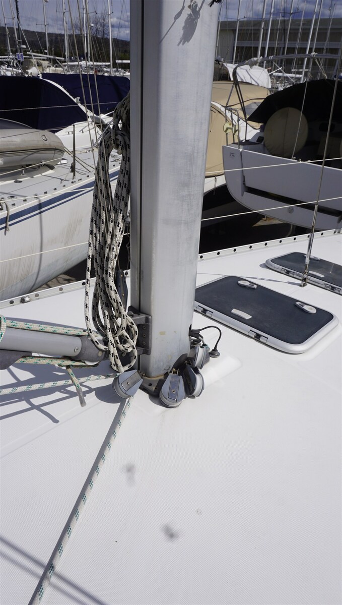 Gennaker-Ausrüstung, Rollfockanlage, kugelgelagerte Mastrutscher, Lazy Bag, Lazy Jack, Grosschottraveller, Baumniederholer.