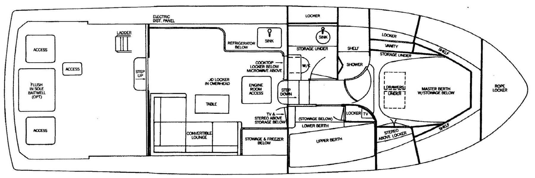 Угол поворота, Electronic engine control, 2 Бортовой компьютер (Volvo), спидометр (Raymarine), Эхолот (Raymarine), GPS (Raymarine), плоттера (Raymarine), Радио VHF (VHF Fly e VHF di rispetto in dinette).