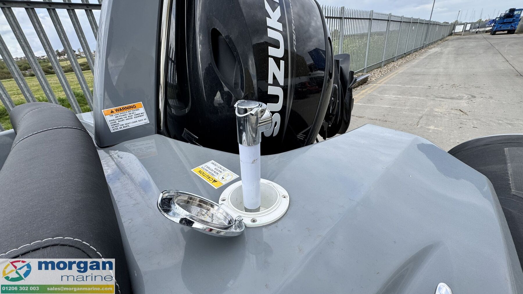 Machinery: Suzuki DF140 outboard with mechanical steering and power trim and tilt - Start / Stop control. Built in fuel tank with external deck filler. Fuel capacity - 121 Litres. Shower tank capacity - 39 Litres.