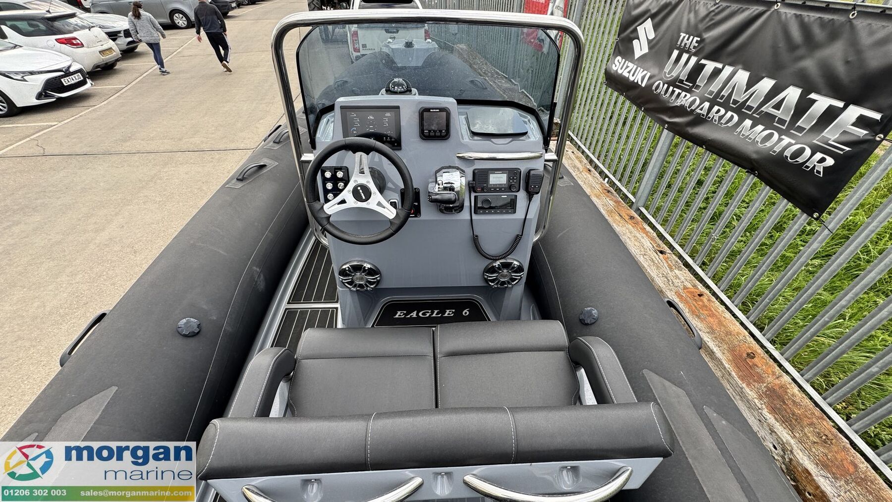 Experience the perfect blend of performance, style, and versatility with this 2023 Brig Eagle 6, a premium Rib designed to turn heads on the water. Built with a deep GRP V-hull and finished with sleek black Hypalon tubes, this boat delivers exceptional handling, stability, and a striking modern look. At the helm, you’ll find a contemporary console paired with a luxurious two person fold-up bench seat with a supportive backrest, offering both comfort and practicality for longer journeys. Up front, the bow transforms into a spacious sundeck with infill cushion, creating the perfect spot to relax and enjoy the sun. For those who enjoy water sports, the fitted ski mast makes towing effortless and fun. This Eagle 6 is well equipped with quality electronics, including a Garmin chart plotter and Garmin VHF radio, and Fusion audio system with speakers. A convenient deck shower adds comfort after a swim. Powered by a reliable Suzuki DF140 outboard with mechanical steering and power trim and tilt, complete with start/stop control, this boat delivers smooth, responsive performance whether cruising or pushing the throttle. Included in the package is an SBS R2/1500EL roller trailer. This is a superb opportunity to own a highly capable and stylish RIB that’s ready for adventure from the moment you step aboard.