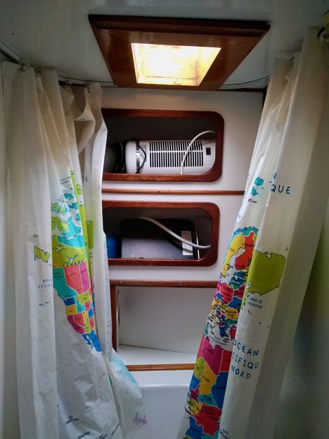 L’électronique de navigation comprend une BLU Icom équipée d’un Pactor pour l’envoi de mails et la réception de fichiers GRIB en mer, une VHF Navicom DSC, un AIS SR161, un GPS Garmin 128 complété par un GPSMAP 276C, un pilote automatique Raytheon ST6000, un radar Raytheon Pathfinder ainsi qu’un sondeur et un anémomètre Raymarine.