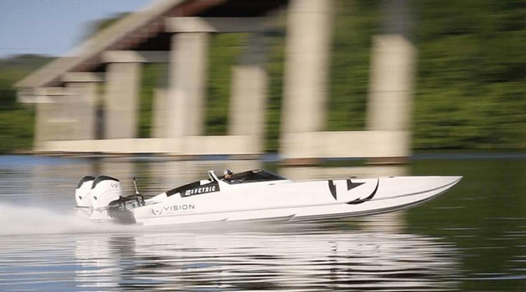 This boat was the world record holder for fastest electric boat from 2022-2023, set by 7 time world champion at Lake of the Ozarks Shootout!