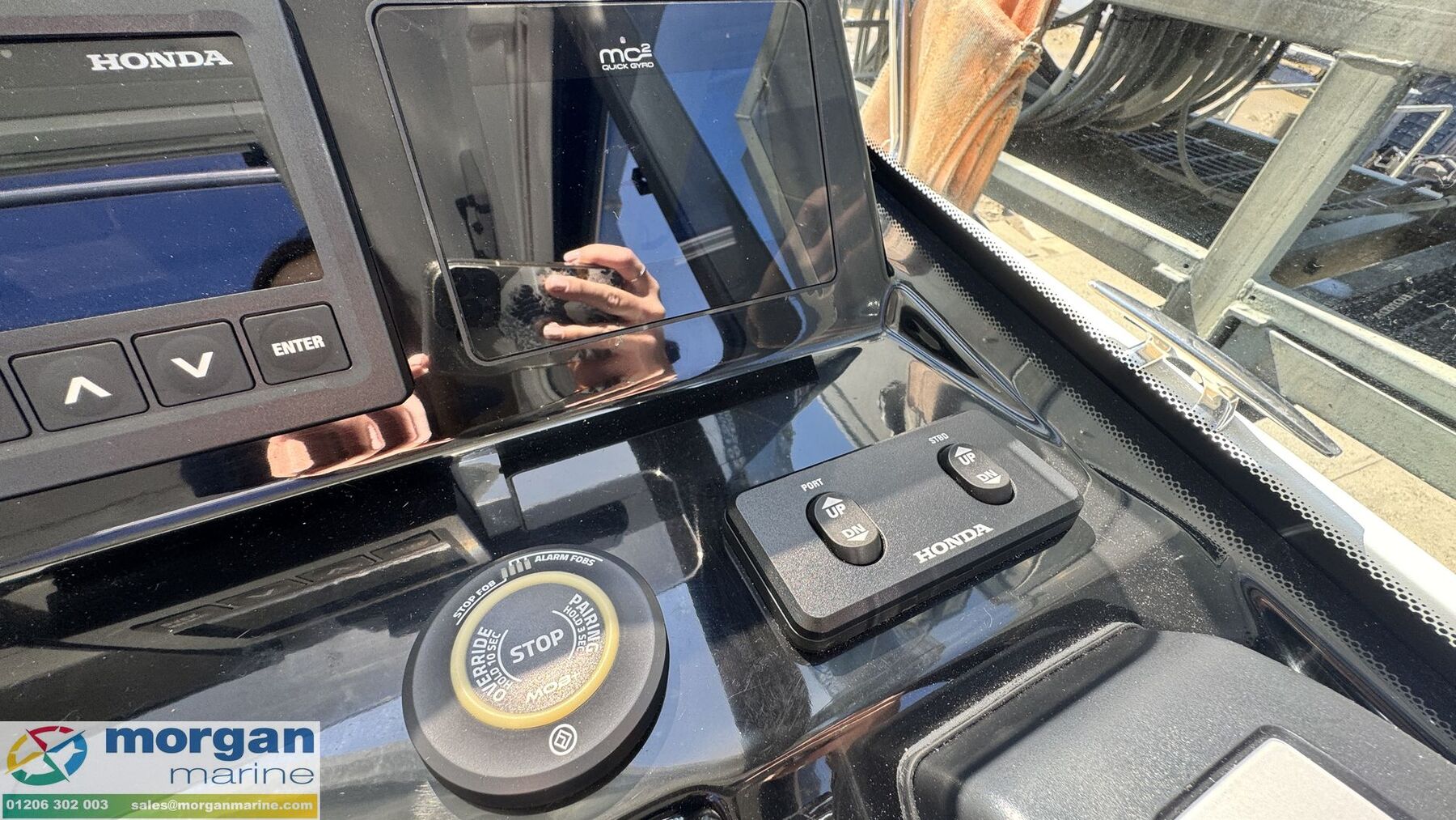 Introducing one of the highest-spec Jeanneau Merry Fisher 1095 models available in the UK this Merry Fisher 1095 even has a gyro stabiliser system! This exceptional vessel is powered by the highly reliable and powerful twin Honda BF250 outboards with only 80 hours, propelling her in to in excess of 36 knots featuring Drive-by-Wire technology and hydro-electric steering for a seamless, responsive experience on the water hitting a top speed of circa 35 knots. At an original RRP of over £340,000 this 1095 offers brilliant value for money. She has been beautifully cared for with many of the cushions, mattresses and tables still in original wrapping, she really is like new. This boat comes fully equipped with an impressive range of premium upgrades over and above the normal factory offering, making her a true one-off - including: Garmin GPS MAP 1223 xsv plotter, Garmin autopilot, Garmin Radar, Garmin stern camera integrated to plotter, Quick Gyro stabiliser, Fusion audio, Diesel forced heating, bow thruster, enclosed canopy set, Synthetic teak decking, shore power, Copper coated hull, Fell man overboard system with 4x fobs and so much more! This 2024 Jeanneau Merry Fisher 1095 truly stands out with its top-of-the-line specifications, ensuring a fantastic and worry-free experience on the water. Don’t miss the opportunity to own this extraordinary boat further complimented by the balance of the manufactures warranties of circa 4 years on the engines and circa 8 on the hull structure! Contact Morgan Marine today for early viewing!