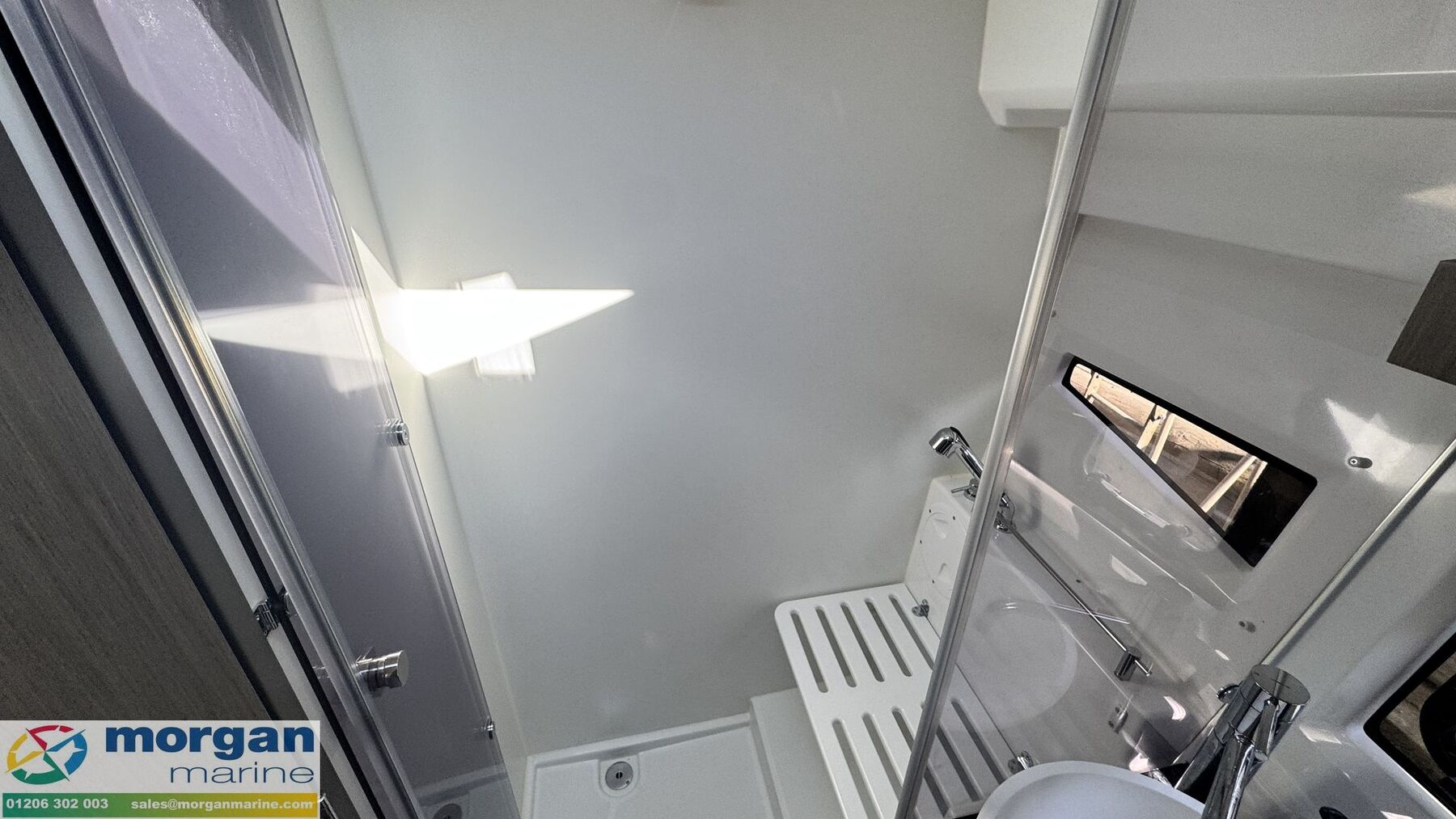 Machinery: Twin Honda BF250 DUDU outboards with power trim and tilt - Drive by wire. Lenco electric trim tabs. Bow thruster. Diesel forced air heating. Manual and electric bilge pumps. Fuel capacity: 2x 400L. Water capacity: 160L + additional 100L; plus connector for direct water supply from shore.