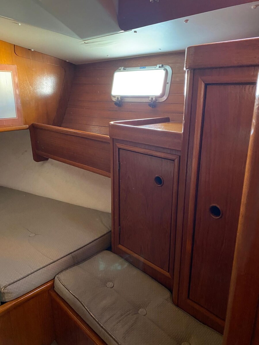 Anchor (+ 80 m 10mm chain/Kette/catena), Water pressure pump, Deck Shower, cradle, Fenders, Manual Bilge Pump, Seawater Pump, Shorepower connector, Electric Windlass, swimming ladder, cockpit table, Tender.