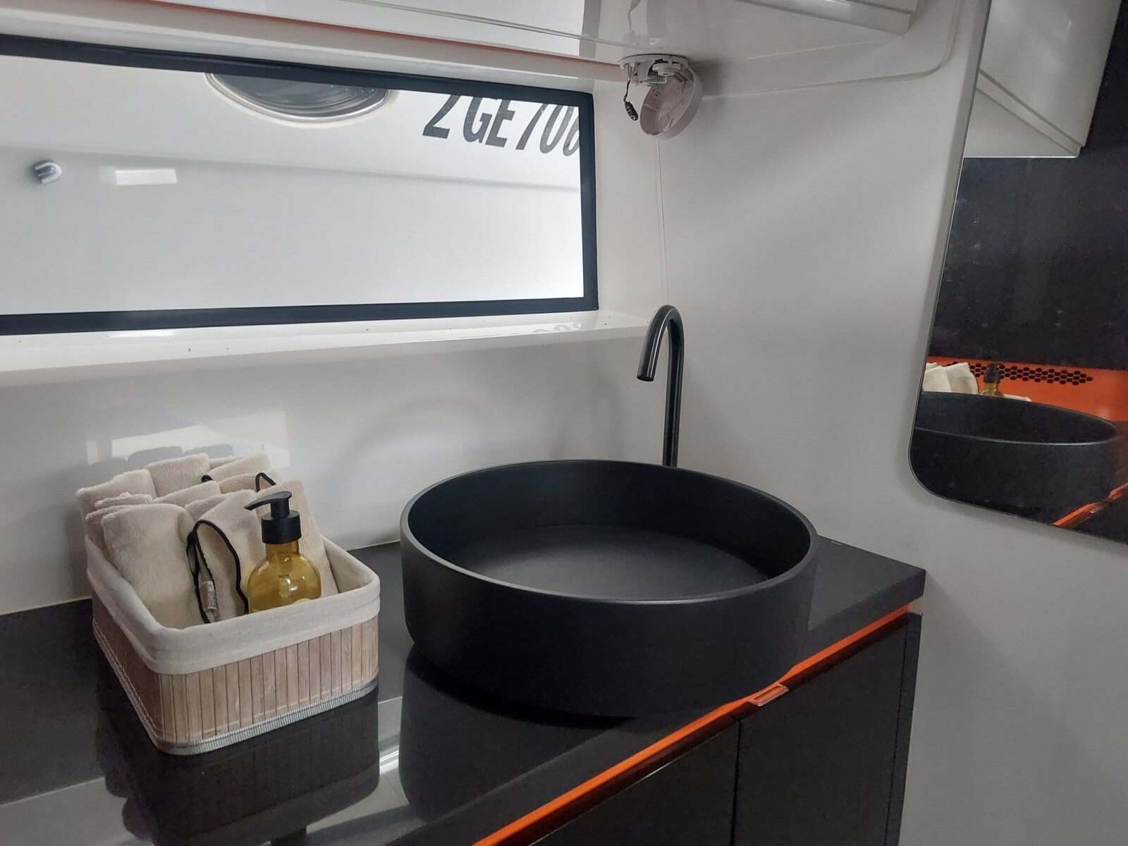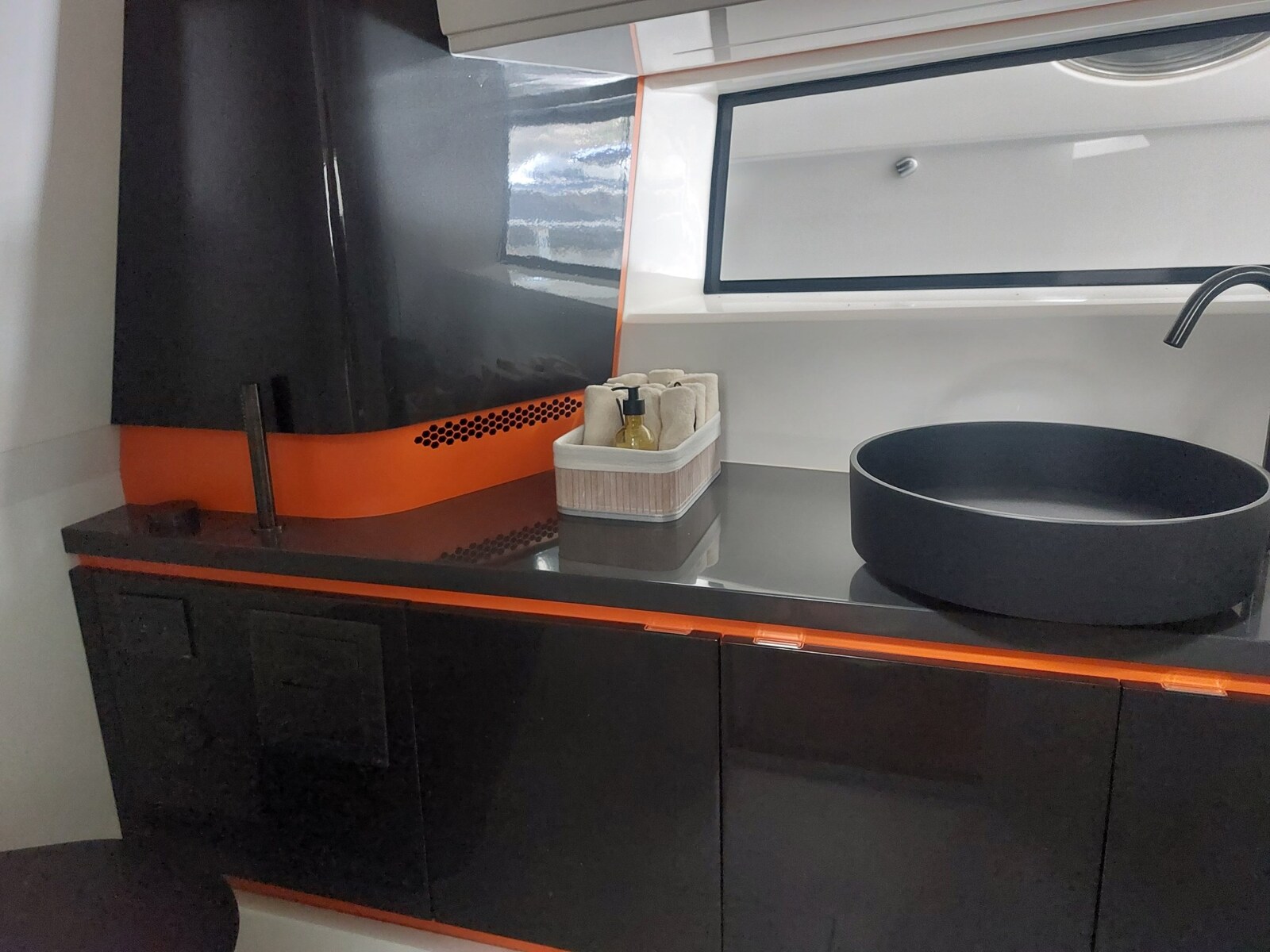 Il MAORI M46 è fedele all'eredità Maori ed è il prodotto di anni di sviluppo, con il risultato finale di un'imbarcazione ad alte prestazioni che unisce comfort e potenza. Alimentato da due motori inboard Cummins da 600 hp, ha una velocità massima impressionante di quasi 45 nodi, fantastica manovrabilità con propulsori di prua e di poppa e un pescaggio ridotto. I suoi spazi esterni sono estremamente confortevoli con aree lounge sia a prua che a poppa, un'area salotto a poppa completa di tavolo, cucina all'aperto con lavello/frigorifero/macchina per il ghiaccio e postazione di comando che può ospitare fino a 3 persone. Cuscini personalizzati si abbinano alla verniciatura grigia e al ponte in teak. Un grande hard top Bimini offre molta ombra. La passerella che si ripiega dalla spiaggetta di poppa funge da scala di accesso o da fantastico trampolino! L'interno presenta un bagno completo con doccia, WC e lavandino, area soggiorno e cuscino lounge che funge da letto, molto spazio in altezza, stoccaggio e ovviamente aria condizionata.