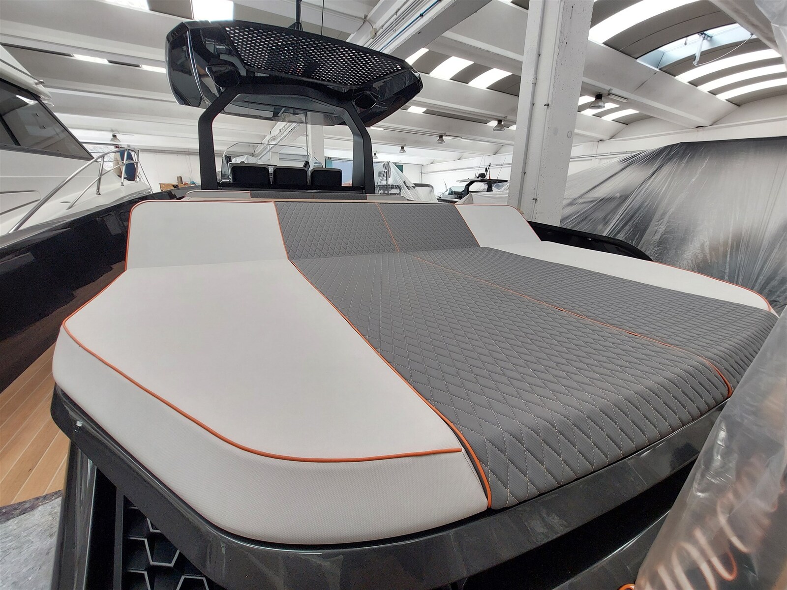 Die MAORI M46 bleibt dem Erbe der Maori treu und ist das Ergebnis jahrelanger Entwicklung, was zu einem Hochleistungsboot führt, das Komfort und Leistung vereint. Angetrieben von zwei 600 PS starken Cummins-Innenbordmotoren hat es eine beeindruckende Höchstgeschwindigkeit von fast 45 Knoten, eine fantastische Manövrierfähigkeit mit Bug- und Heckstrahlruder und einen geringen Tiefgang. Die Außenbereiche sind äußerst komfortabel mit Loungebereichen sowohl vorne als auch achtern, einem Sitzbereich achtern mit Tisch, einer Außenküche mit Spüle/Kühlschrank/Eismaschine und Steuerstand, der Platz für bis zu 3 Personen bietet. Maßgeschneiderte Kissen passen zur grauen Lackierung und zum Teakdeck. Ein großes Bimini-Hardtop spendet viel Schatten. Die Gangway, die von der hinteren Badeplattform heruntergeklappt werden kann, dient als Zugangsleiter oder fantastisches Trampolin! Der Innenraum verfügt über ein komplettes Badezimmer mit Dusche, WC und Waschbecken, einen Wohnbereich und ein Loungekissen, das als Bett dient, viel Stehhöhe, Stauraum und natürlich eine Klimaanlage.