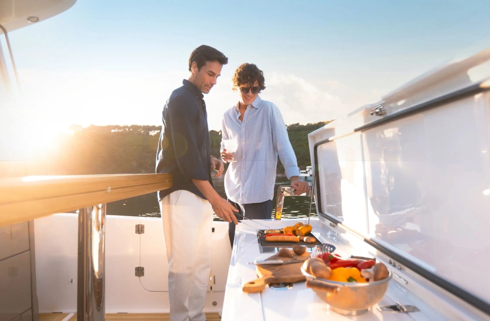 The modular design of the Wayfinder 38 gives boaters exceptional flexibility to adapt their boats to changing needs, even years after purchase. With this innovative approach, you can, for example, transform the bow area from a large sofa unit into a sun bed, reconfigure the aft area from a wetbar to additional seating, or convert the cabin from a closed configuration to a sun-top. This level of customization ensures your boat evolves with your lifestyle, offering functionality and versatility like never before.