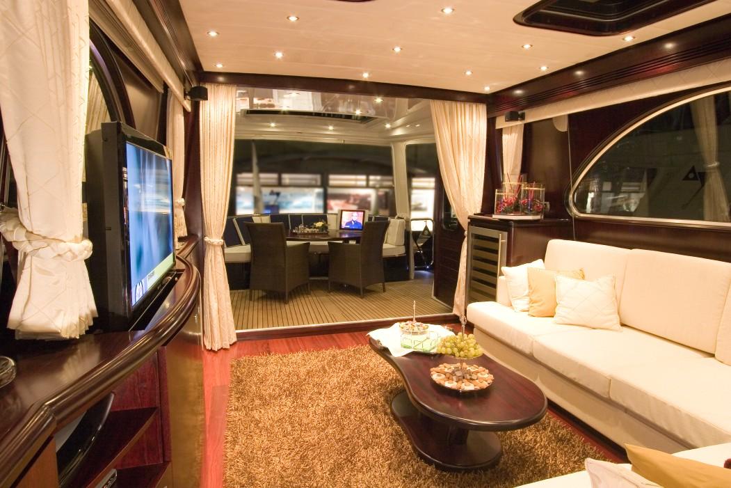 Plenty cupboards and other spaces house all needed equipment for a perfect live aboard. SAT-TV, DVD, DVB-T TV and a Bose sound system completes the entertainment.