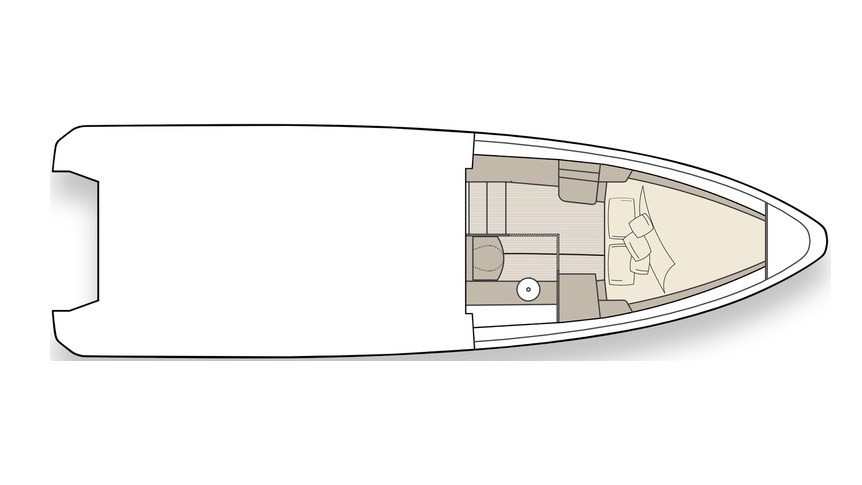 Coussins arrieres, Coussin avant, Tauds de fermeture T-Top (Canopy completo), Taud de siège (set completo copri sedili e divani), 2 Taud de soleil (prua e poppa con pali in carbonio), Rideaux (in cabina).