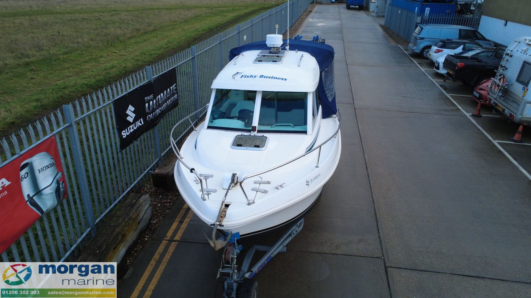 Just arrived at Morgan Marine, this 2004 Jeanneau Merry Fisher 625 is a superb example of a well cared for and highly specified cruiser/fisher, ideal for both relaxed family outings and serious fishing trips. Powered by a 2017 Mariner F115 outboard with approximately 474 hours, the boat offers reliable performance and efficiency, with the added reassurance of a Tohatsu 6hp auxiliary outboard for peace of mind. This Merry Fisher benefits from an impressive electronics package including Raymarine Dragonfly 4 and DS400x fish finders, a Standard Horizon CP180 5-inch chart plotter, JRC LCD 1000 MK II radar, and an Icom ship-to-shore VHF radio, making her extremely capable for coastal navigation and fishing. On deck, the large cockpit features bench seating with cushions, rod holders, electric trim tabs, and an electric windlass complete with anchor, chain, and rope. A full blue enclosed canopy provides excellent protection from the elements too! Below, the cuddy cabin offers two berths and a sea toilet, while the compact galley is equipped with a sink, storage, and stove. Additional features include shore power, solar panels with battery charger, and a 2024 Snipe 1600 roller trailer, making her perfectly suited to Morgan Marine’s park and ride convenience. A versatile and turnkey package ready to be enjoyed immediately.