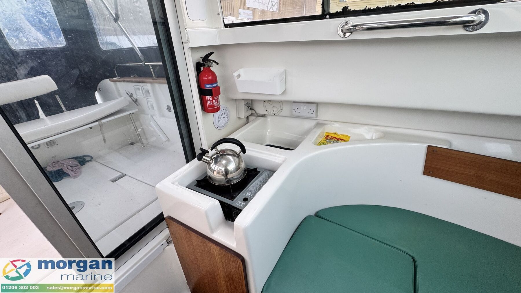 Electronics: Raymarine Dragonfly 4 fishfinder. Raymarine DS400x fishfinder. Standard Horizon CP180 5 inch chart plotter. JRC LCD 1000 MK II radar. Icom ship to shore VHF radio. Electric trim tabs. Shore power. USB sockets. UK plugs.