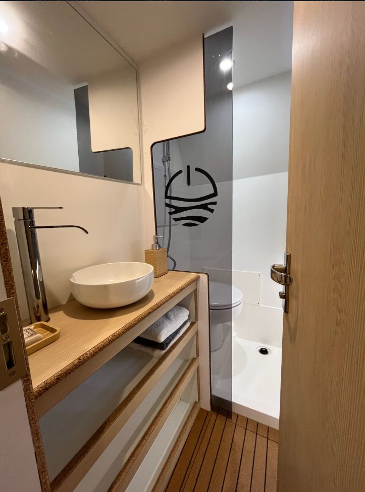 2 cabines doubles avec rangements, hublots et liseuses USB