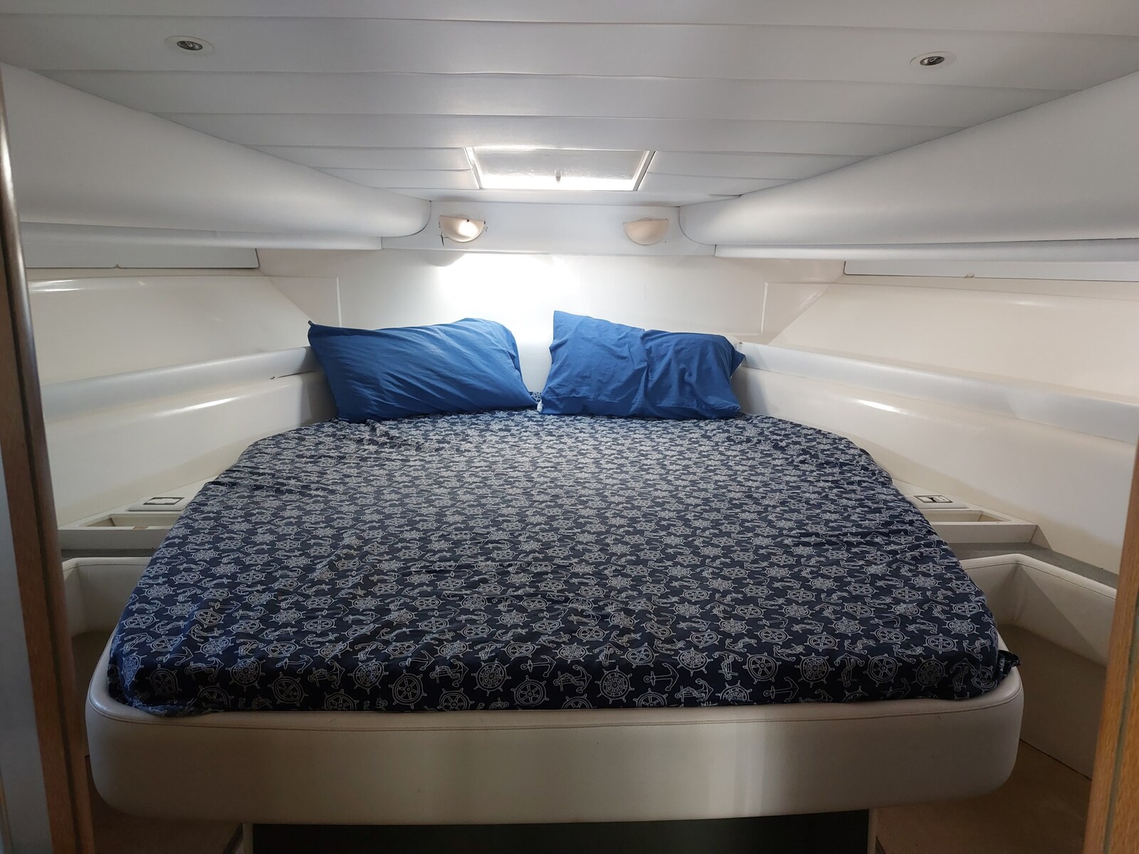 Beautiful Mochi 44 Fly. Completely overhauled. Engines landed and rebuilt in 2024. Wide spaces, excellent seaworthiness, an eternal boat. This boat offers three cabins and two bathrooms, with very large and comfortable spaces dedicated to conviviality. The engines, two Mercruiser 480s are in perfect and impeccable maintenance and guarantee a comfortable and economical cruise. With new 2023 cushions and bathrooms redone in the same year, the boat looks immaculate, to be seen and tested.