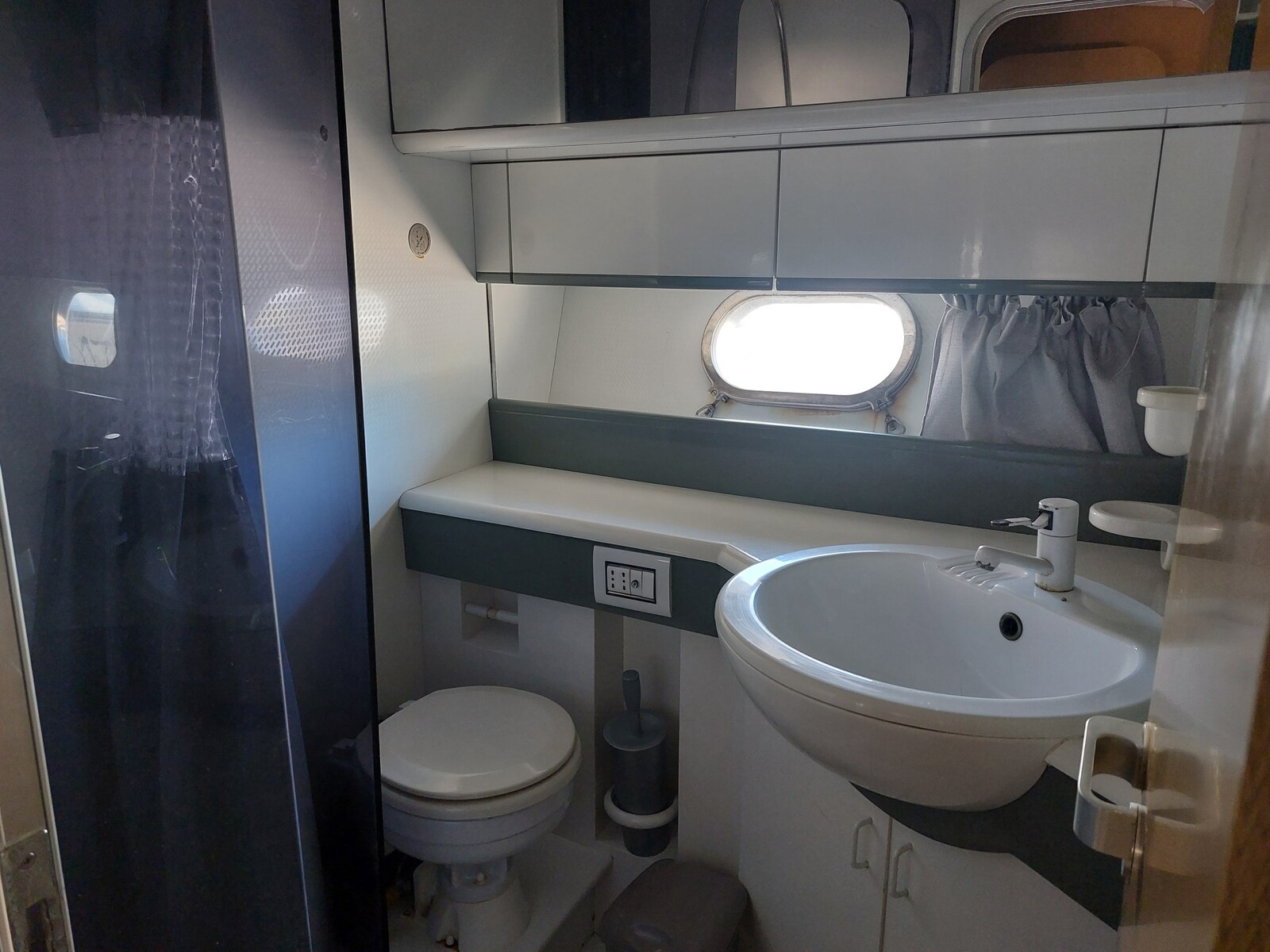 Acqua Calda, BBQ/ Grill, Boiler (bivalente), Indicatore del serbatoio del carburante, Indicatore del Serbatoio dell’Acqua, Indicatore del Serbatoio delle Acque Reflue, Prese interne 12v, Prese interne 220v, 2 WC marino elettrico.