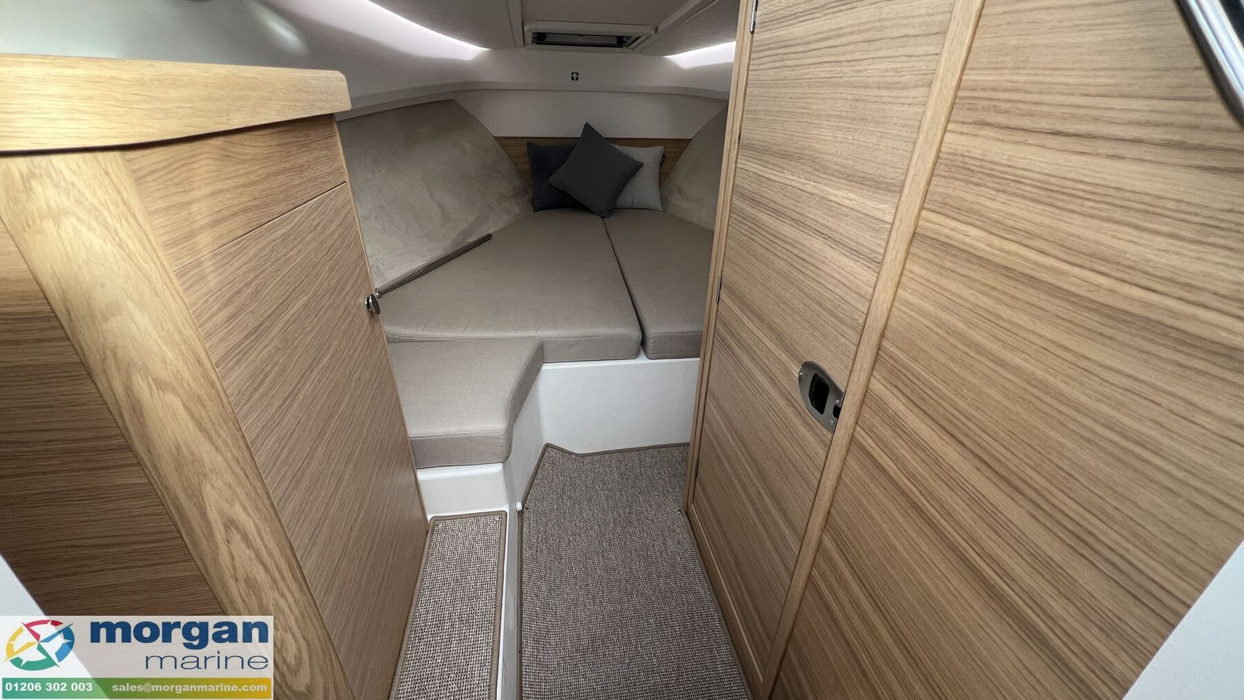 Cabin: The forward cabin features a cosy double berth, roof hatch and a dedicated wardrobe. A separate toilet compartment equipped with an electric-flush head + black-water overboard discharge, sink, and shower - ensures onboard convenience and privacy. To enhance onboard comfort, the cabin is fitted with plush carpeting, curtains and Nimbus pillow set.