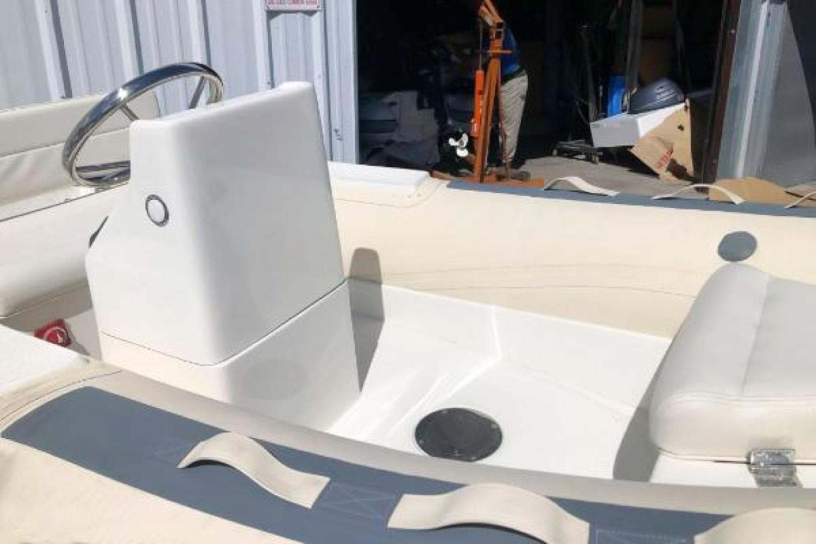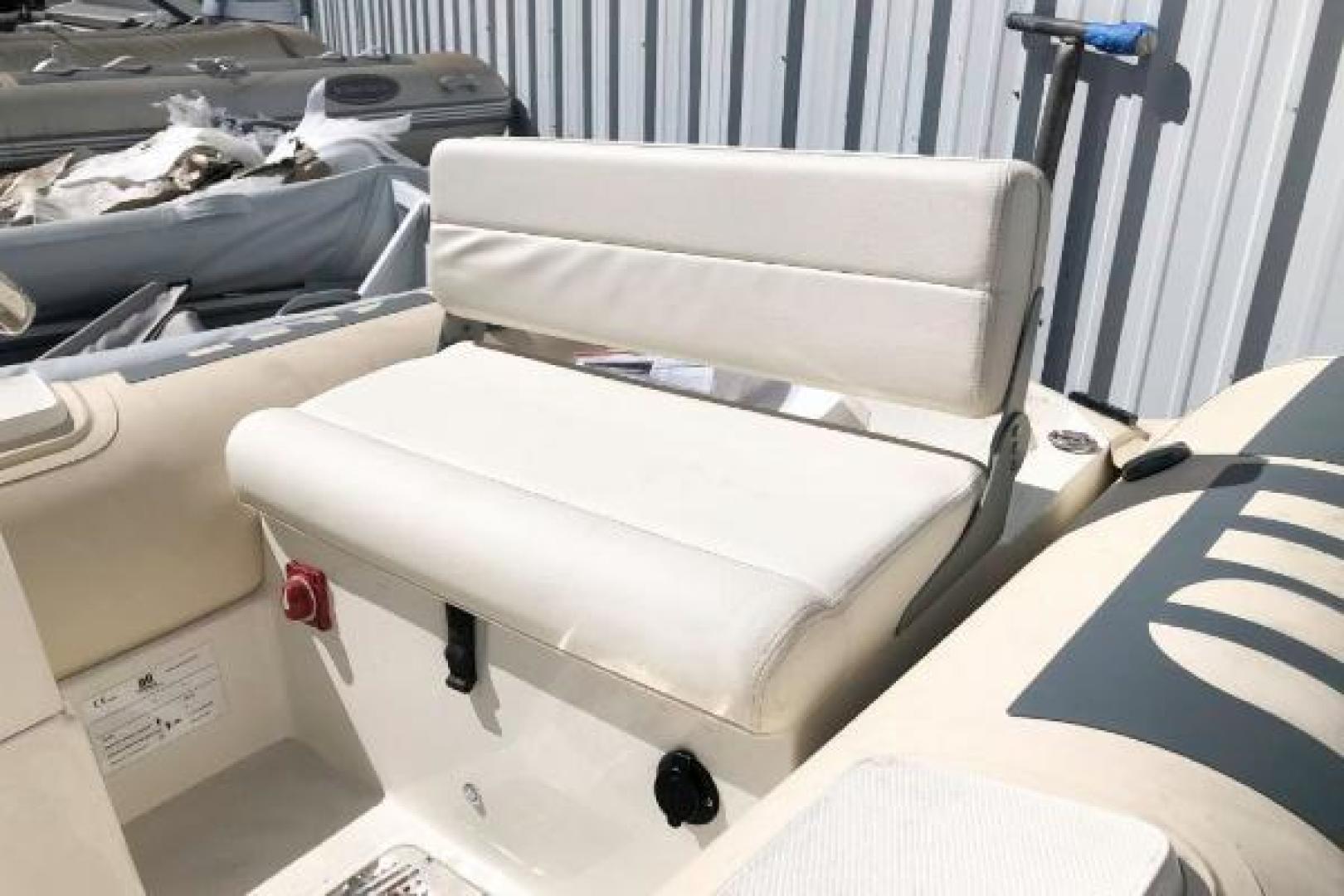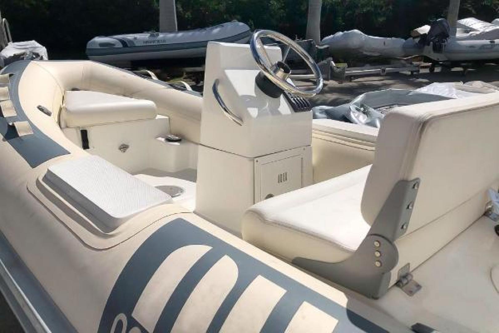 This new 2015 Novurania 360 DL features crème tubes with gray accents. Its spacious design accommodates up to six passengers, making it the perfect rigid hull inflatable tender for a demanding yacht. It is 11’9” in length with a 5’6” beam. The hull weighs just 425 lbs and is a C in the CE Boat Design Category. This is priced as boat only. For an additional price, several engine options are available, with a Yamaha F40 HP suggested.