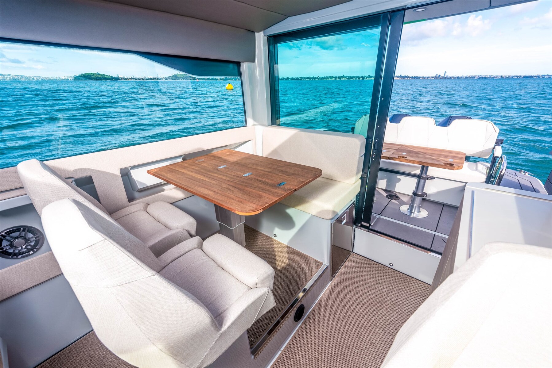 Le Saxdor 320 GTC partage le même design de coque raffiné, efficace et axé sur la performance que le modèle 320 GTO. Un centre de gravité bas, un faible poids, une proue pointue et une coque à double pas infusée sous vide créent une expérience de conduite unique dans tous les types de mers et de conditions météorologiques, partout dans le monde. Le Saxdor 320 GTC est disponible avec trois options de groupe motopropulseur Mercury, allant de 300 ch à 600 ch. Vous pouvez choisir l’option monomoteur, ou l’option bimoteur avec 2 x 225 ch ou 2 x 300 ch, le véritable « Grand Turismo de la mer ». Le Saxdor 320 GTC redéfinit l’expérience du mouvement à bord. Grâce à son concept unique d’une timonerie spacieuse et d’un accès facile à la proue, se déplacer en bateau n’a jamais été aussi facile. Saxdor croit au luxe de l’espace inutilisé. Contactez-nous pour chaque détail.