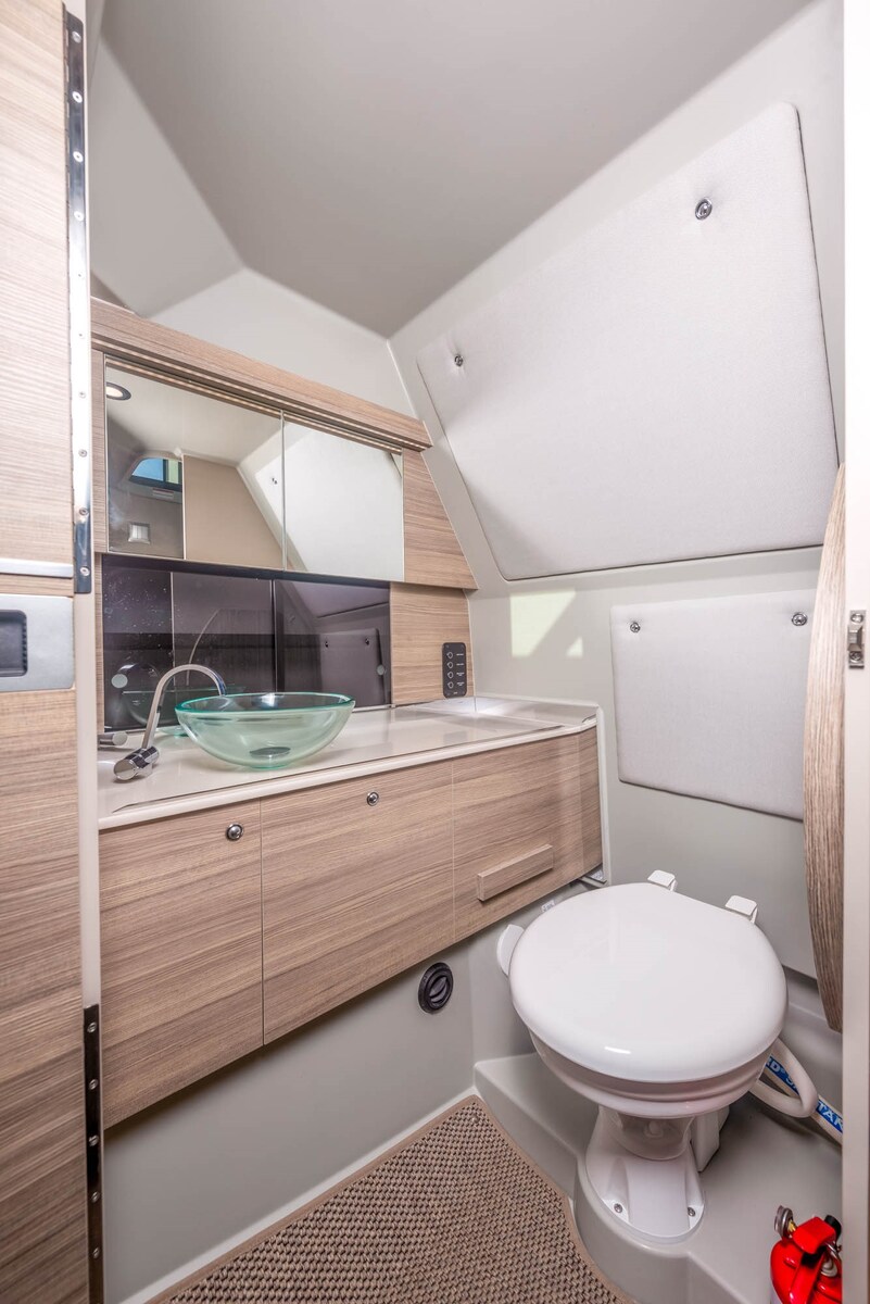 Boiler (opzione aggiuntiva), Prese interne 12v, Prese interne 220v, WC marino elettrico.
