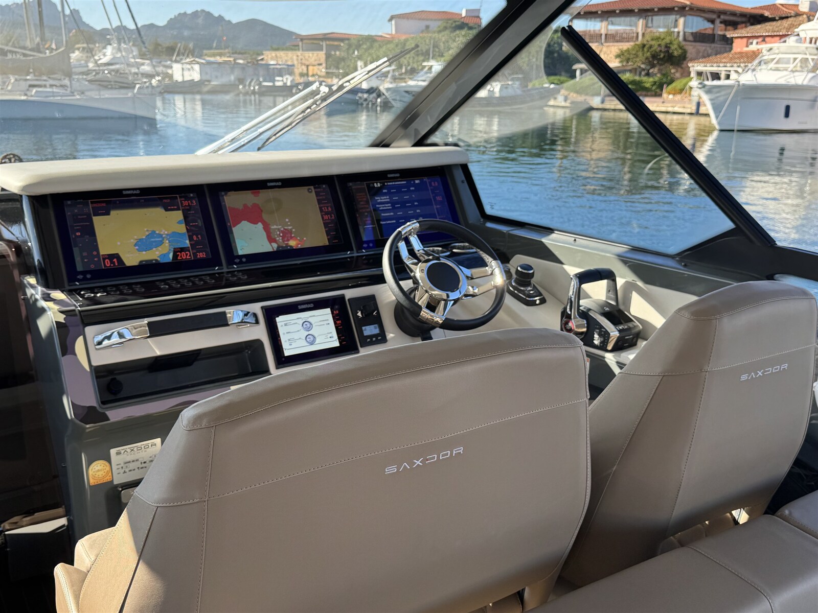 AIS, Antenna radar, Computer di bordo, 3 Display (SIMRAD), DSC vhf, Ecoscandaglio (P79), Joystick (Integrato con elica di prua), Monitor dei consumi, Plotter con antenna GPS, Quadro comandi, Sedile Copilota.