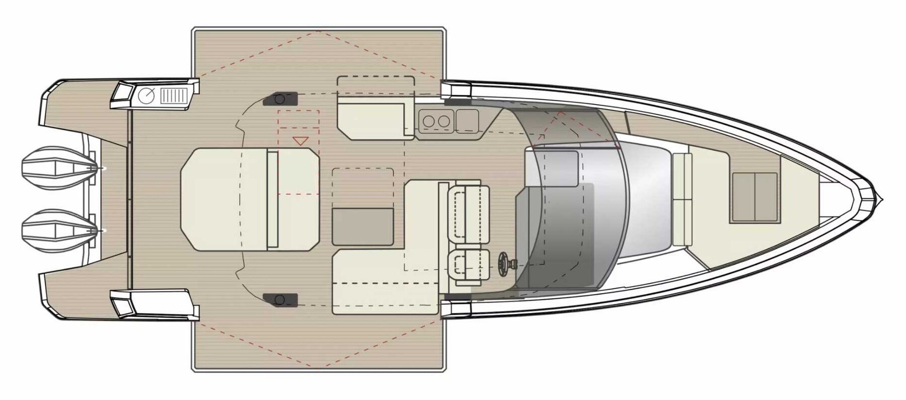 Toldo de bañera, Cojinería completa, Cojines de popa, Cojines de proa, Cojinería bañera, Cortinas Opacas, Solarium, Toldos de cierre T-Top, Funda para barco, Funda cónsola, 4 Funda asientos, 2 Toldo (A poppa e a prua con pali in carbonio).
