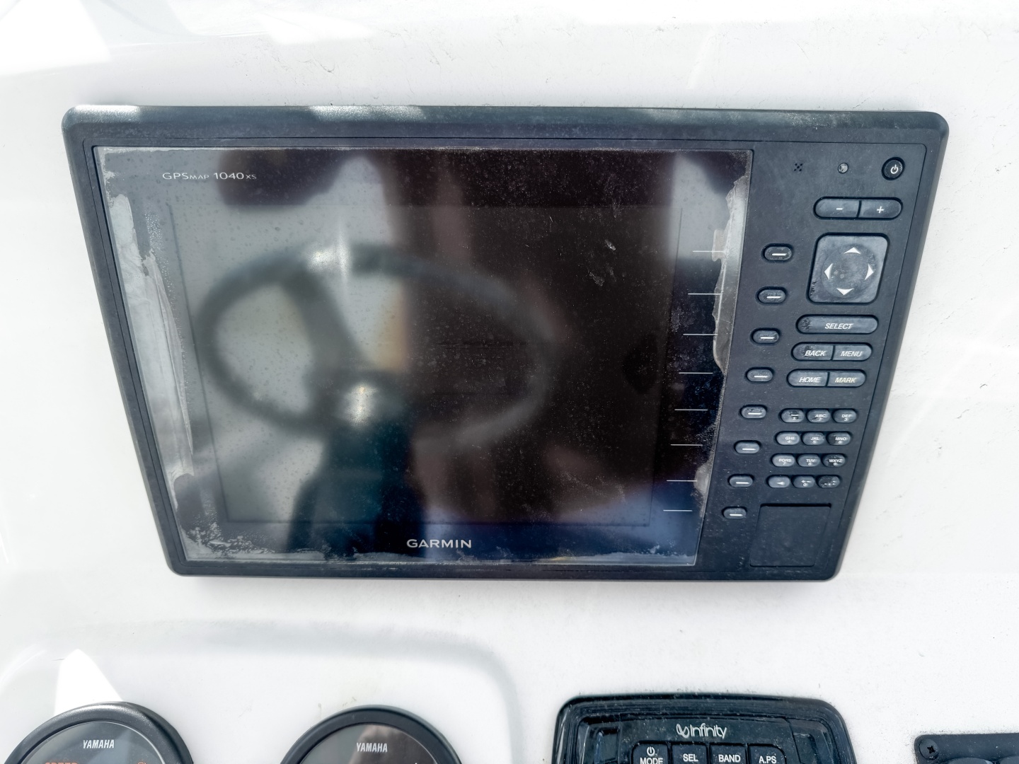 It comes with an array of features, including an Artlas Jack Plate, power pole, Minkota riptide trolling motor, underwater lights, trim tabs, and Garmin GPS Map1040XS with transducer.