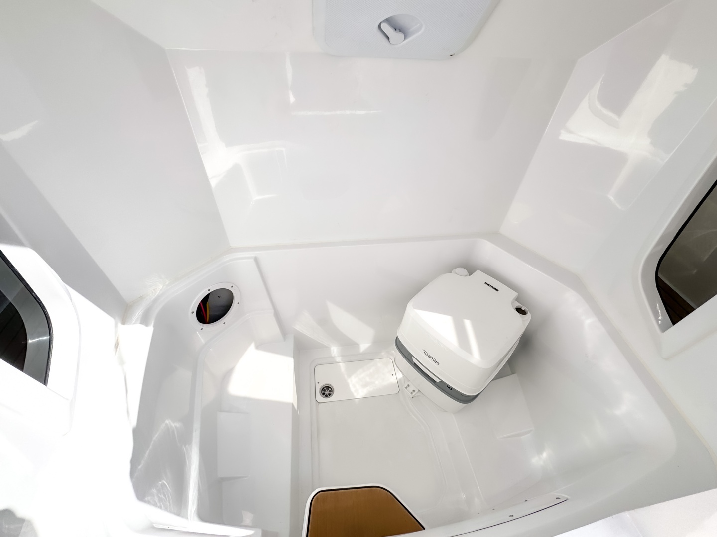 The convertible U-shaped lounge with sunbed transforms the deck into a vibrant social zone—perfect for open-air dining, entertaining, and romantic sunsets. Passenger seats with a leaning function ensure safe, enjoyable cruising. Bow and cabin storage keep everything neatly organized.